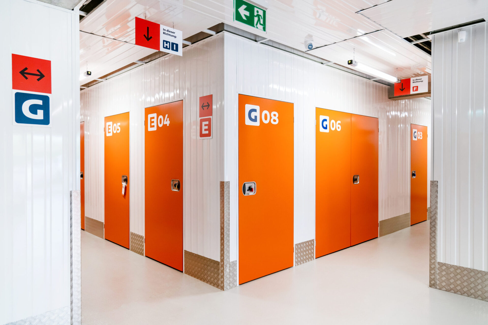 Bei uns steht die Sicherheit Deiner eingelagerten Gegenstände im Mittelpunkt. Unsere Sicherheitsmaßnahmen umfassen hochauflösende Kameras, die rund um die Uhr alle Zugänge überwachen. Lediglich aktuelle Lagerraummieter in Essen erhalten Zugang zum Lagerkomplex – und auch nur zu ihrer jeweiligen Etage. Das gesamte Gebäude ist versichert, und wir bieten optionalen Zusatzschutz für hochwertige Gegenstände an. Damit ist all Dein Hab und Gut umfassend behütet!